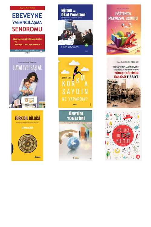 Ebeveyne Yabancılaşma Sendromu - Eğitim ve Okul Yönetimi - Eğitimin Mekansal Boyutu - Hayat Evde Başlar - Korkmasaydın Ne Yapardın? - Osmanlı'dan Cumhuriyet'e Toplumsal İlerlemenin ve Türkçe Eğitimin Öncüsü Tıbbiye - Türk Dil Bilgisi - Üretim Yönetimi - İngilizce İlk 100 Kelimem