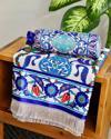 İpeksi dokusu; göz alıcı renkleri ile Türk motifli ve Çini desenli seccade halı modellerimiz dekoratif bir görünüm sunarken kompakt tasarımı ve hafif yapısı sayesinde seccadeyi rahatlıkla sırt çantanızda veya el çantanızda taşıyabilirsiniz. Artık namaz kılmak için yalnızca evde veya camide değilsiniz. Bu keseli seccade sayesinde her yerde rahat ve huzurlu bir namaz deneyimi yaşayabilirsiniz. Kadife dokusu 65 x 115 cm ebatları ile rahat kullanımınız için özel olarak tasarlanmıştır.