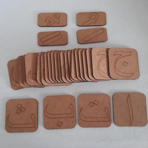 3 mm mdf den 28 adet Elifba harfleri 7x7 cm boyutlarındadır. 4 adet harekelerden oluşmaktadır.