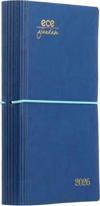 Modern tasarımlı bir Ece klasiği olan bu model yumuşak termo deri kapak üzerine yaldız baskılı, ortadan renkli lastik muhafazalı, saten kurdele ayraçlı günlük düzende 12 aylık ajandadır.