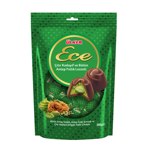 ECE İkramlık Çıtır Kadayıf ve Bütün Antep Fıstıklı Sütlü Çikolata - 300 gram