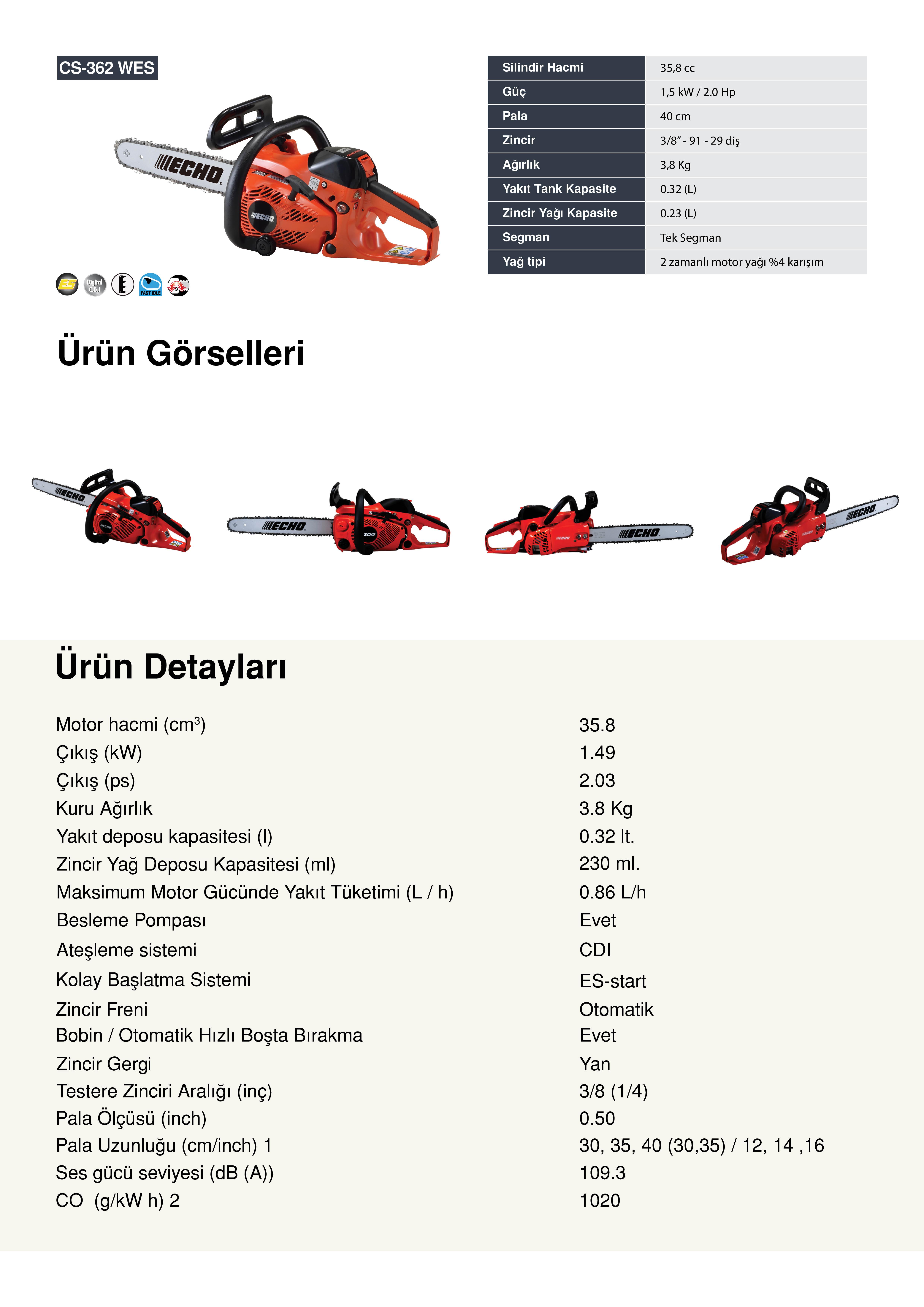 | Yağ Tipi | 2 zamanlı motor yağı %4 karışım |