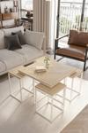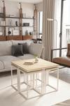 ED Efelez Design Lizbon 4+1 Kare Sehpa Takımı Beyaz Metal - Masif Ahşap Tabla