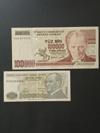 Edi Antik 7. Emisyon 100.000 Ve 10 Türk Lirası. Eski Koleksiyon Kağıt Para.