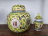 Edi Antik Çin El Boyama Vazo Sarı 2 Adet. Komple Porselen