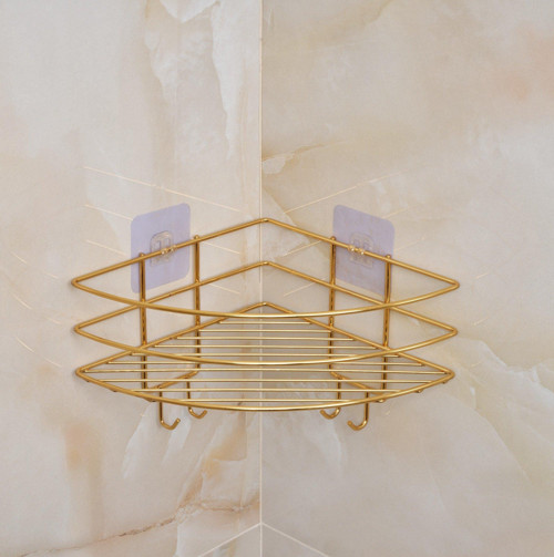 Altın Lüx Köşe Raf Organizer – Yapışkanlı ve Paslanmaz Metal Banyo Duş Şampuanlık, Mutfak Baharatlık, Çok Amaçlı Düzenleyici Stand