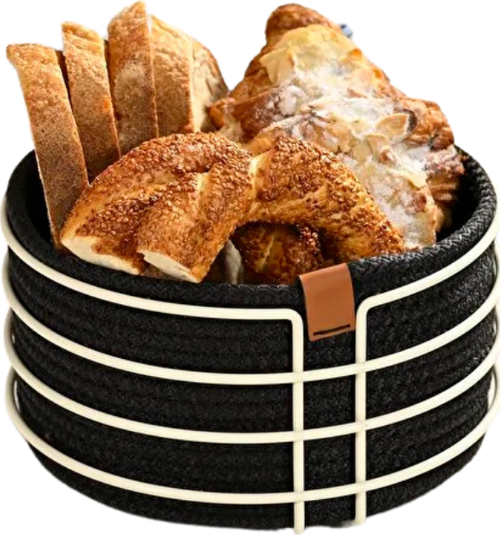 Edorahome Bej Yuvarlak Ekmek Sepeti Şık,Ekmeklik Siyah Hasır Örmeli Makrome-Çok Amaçlı Metal Paslanmaz