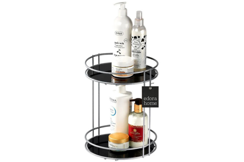Edorahome Gümüş 2 Katlı Banyo Organizer Düzenleyici Servis Sunum İkramlık Pleksili - Metal Paslanmaz