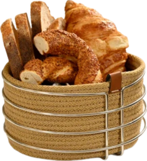 Edorahome Silver Yuvarlak Ekmek Sepeti Şık,Ekmeklik Kahve Hasır Örmeli Makrome-Çok Amaçlı Metal Paslanmaz