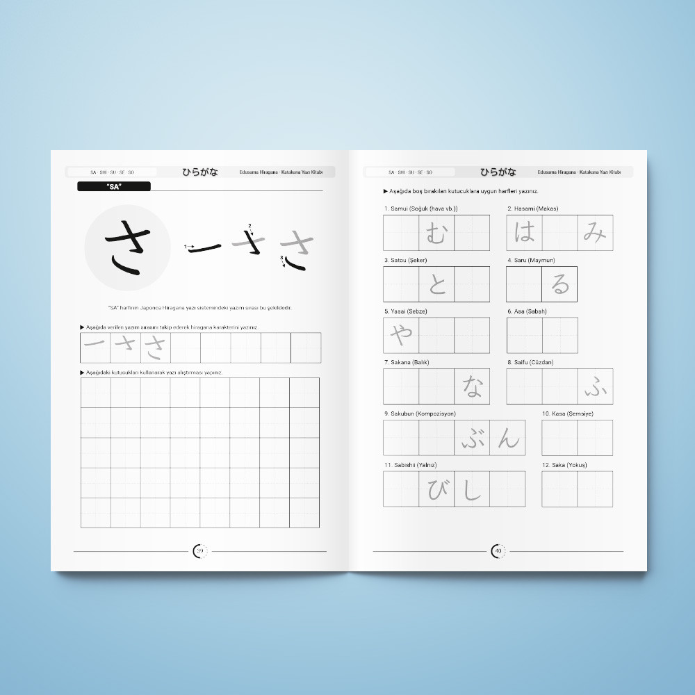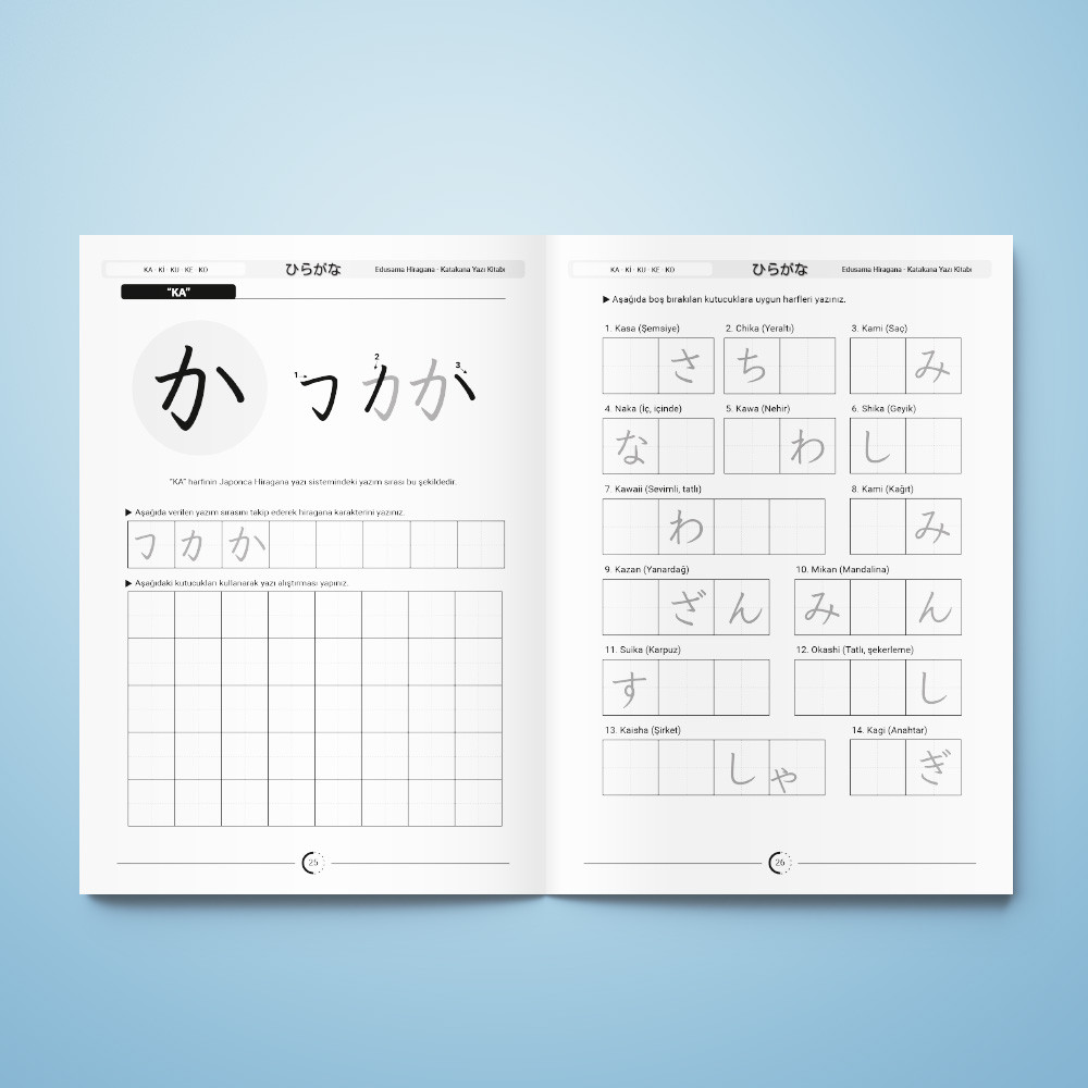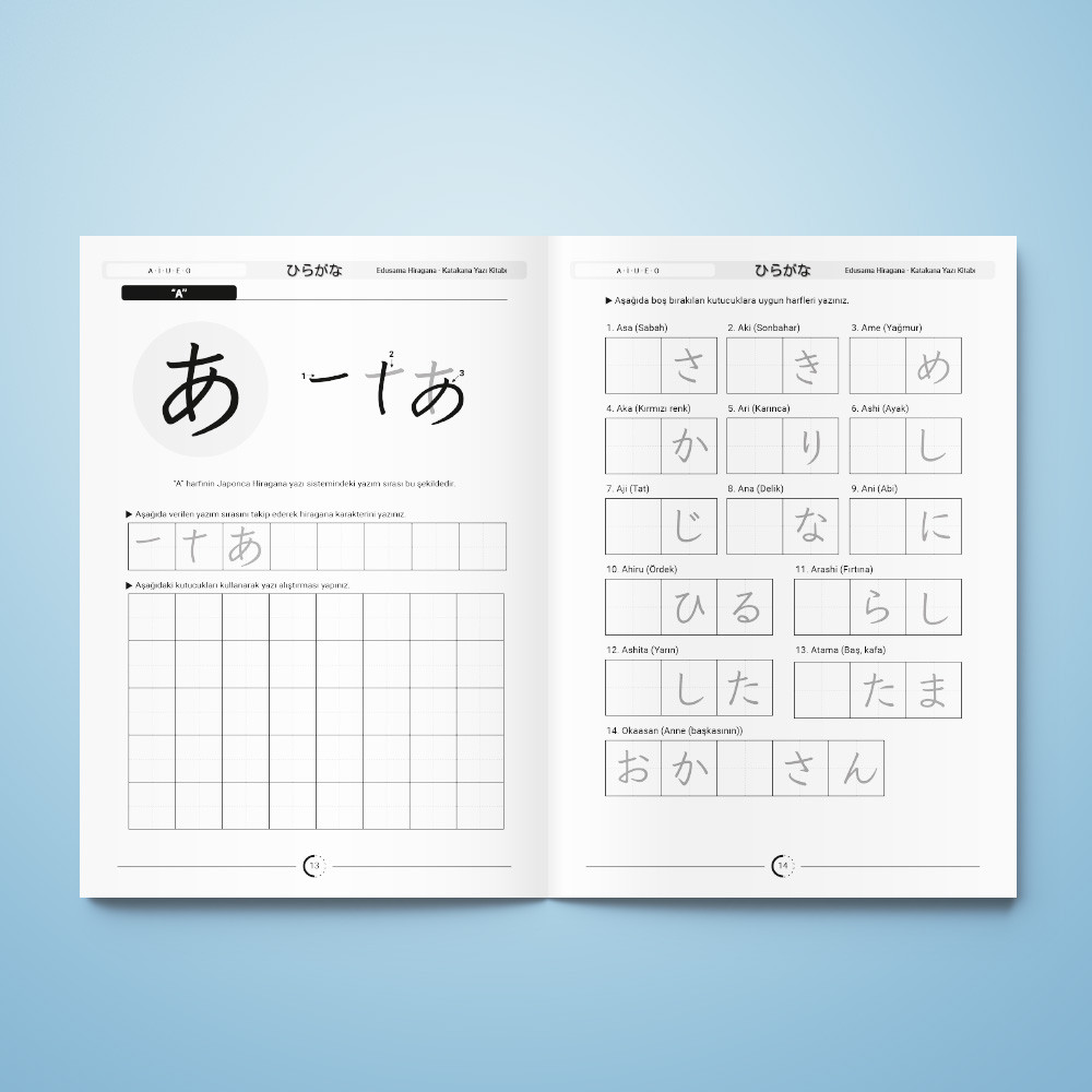 Japonca yazı sistemine adım atmak isteyenler için hazırlanan Hiragana – Katakana Yazı Kitabı, Hiragana ve Katakana karakterlerini öğrenmek ve uygulamak için kapsamlı bir rehber sunmaktadır. Bu kitap, Japonca okuma ve yazma becerilerinin temellerini sağlamlaştırmak isteyen her yaş grubundan okuyucuya uygun bir içerik sunar.