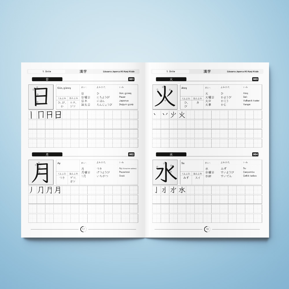 - Adım Adım Öğretim: Her bir Kanji’nin yazılışı ve anlamı, kolay anlaşılır bir şekilde adım adım açıklanmıştır.