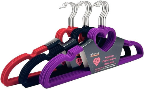 Efe Mark Premium Serisi 20'li Ekonomik Paket Kadife Kaydırmaz Elbise Kıyafet Askısı, 10 Siyah + 5 Mor + 5 Kırmızı
