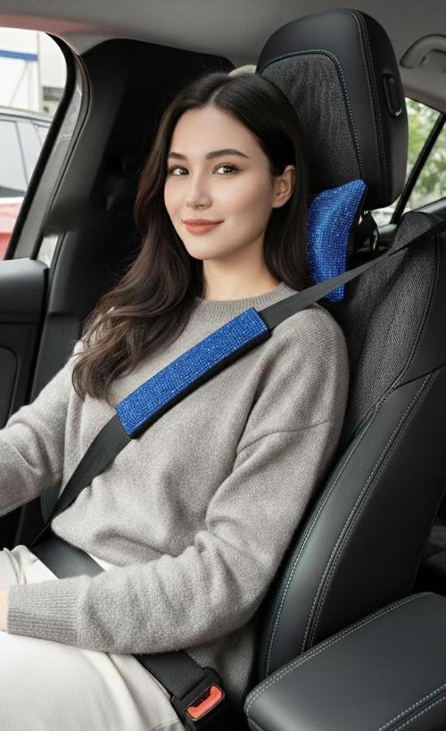 Efeaks Mavi Taşlı Tüm Araçlara Uyumlu Şık Boyun Yastığı Ve Emniyet Kemer Seti