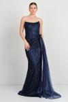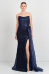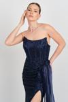 Eflin Kadın Straplez Korsajlı Full Taş İşlemeli Uzun Abiye Elbise 5507 Lacivert