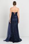 Kadın Straplez Korsajlı Full Taş İşlemeli Uzun Abiye Elbise 5507 Lacivert