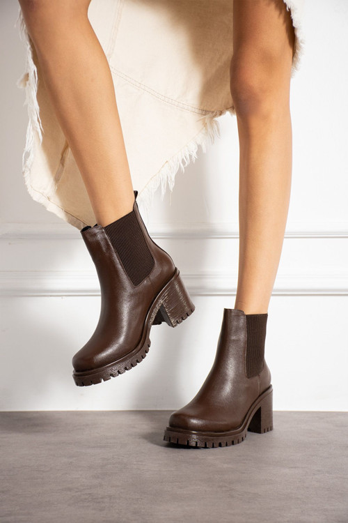 - Tarzınızı ön plana çıkaracak bu kahverengi Chelsea bot, modern tasarımı ve rahat yapısıyla dikkat çekiyor.