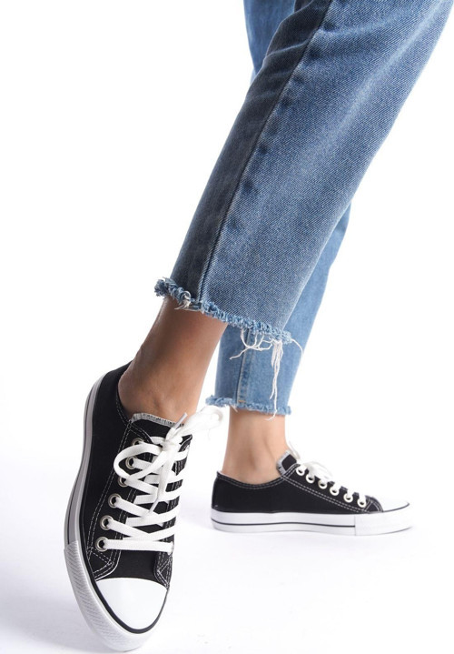 Basic koleksiyonunun bir parçası olarak, günlük kullanım için ideal olan bu siyah beyaz kadın sneakers, şıklığı ve rahatlığı bir arada sunar