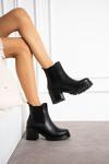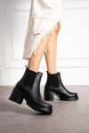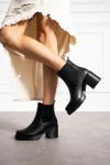 Eformoda Siyah Kadın Yanı Lastikli Su Ve Soğuk Geçirmez Kaymaz Taban Kalın Topuklu Chelsea Bot T02 39