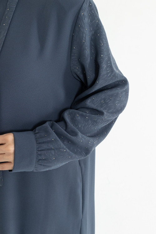 Zarif detayları ve rahat kalıbıyla öne çıkan Efsun Taşlı Buhara Ferace, Buhara kumaşın tok ve akıcı yapısı sayesinde gün boyu konforlu bir kullanım sunar. Ön bölümde yer alan ince taş detayları, feraceye sade ama şık bir ışıltı kazandırır.
