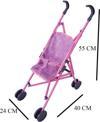 Pembe puset bebek arabası oyuncak plastikten üretilmiştir. Oturak kısmı kumaştır.