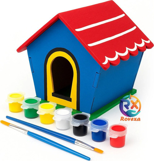 Rovexa Eğitici Ahşap Oyuncak Kuş Evi ve Ev Boyama Seti, Ahşap Boyama Evi, Ahşap Oyuncak Yapboz Kuş Evi