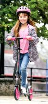 Bu Flexi Max scooter, yetişkinler için uygun olacak kadar büyük 200 mm tekerleklere sahiptir.