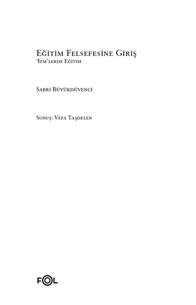 Eğitim felsefecisi Sabri Büyükdüvenci, bu eserinde, eğitim felsefesinin anlamı ve neliğini sorgulamaktadır.