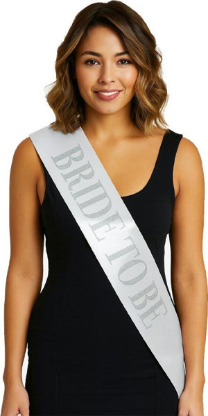 Beyaz Saten Üzerine Kalın Gümüş Yazılı Bride To Be Kuşağı TG-V 9754
