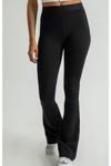 - İspanyol paça tasarımı ile modern ve şık bir siluet sunan düz kesim tayt.