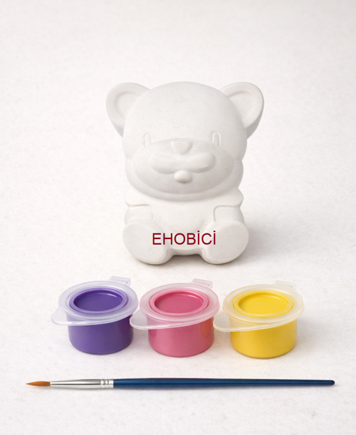Ehobici Taş Boyama Seti Sevimli Ayıcık 3 Renk Akrilik Boya 5ml + Fırça