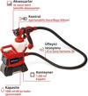 Einhell akülü boya püskürtme sistemi TE-SY 18/90 Li-Solo pratik aksesuarlar ile birlikte gelir. Teslimat, çeşitli boya, sır ve renk viskoziteleri için 3 nozul (Ø 3.0 mm, 2.5 mm, 1.5 mm), ölçüm ölçeği ve kapağı olan bir boya kabı (1.200 ml) ve viskozite testi için bir kap içerir. Boya püskürtücünün optimum temizliği için, bir temizleme fırçası ve bir temizleme iğnesi de teslimat kapsamına dahildir