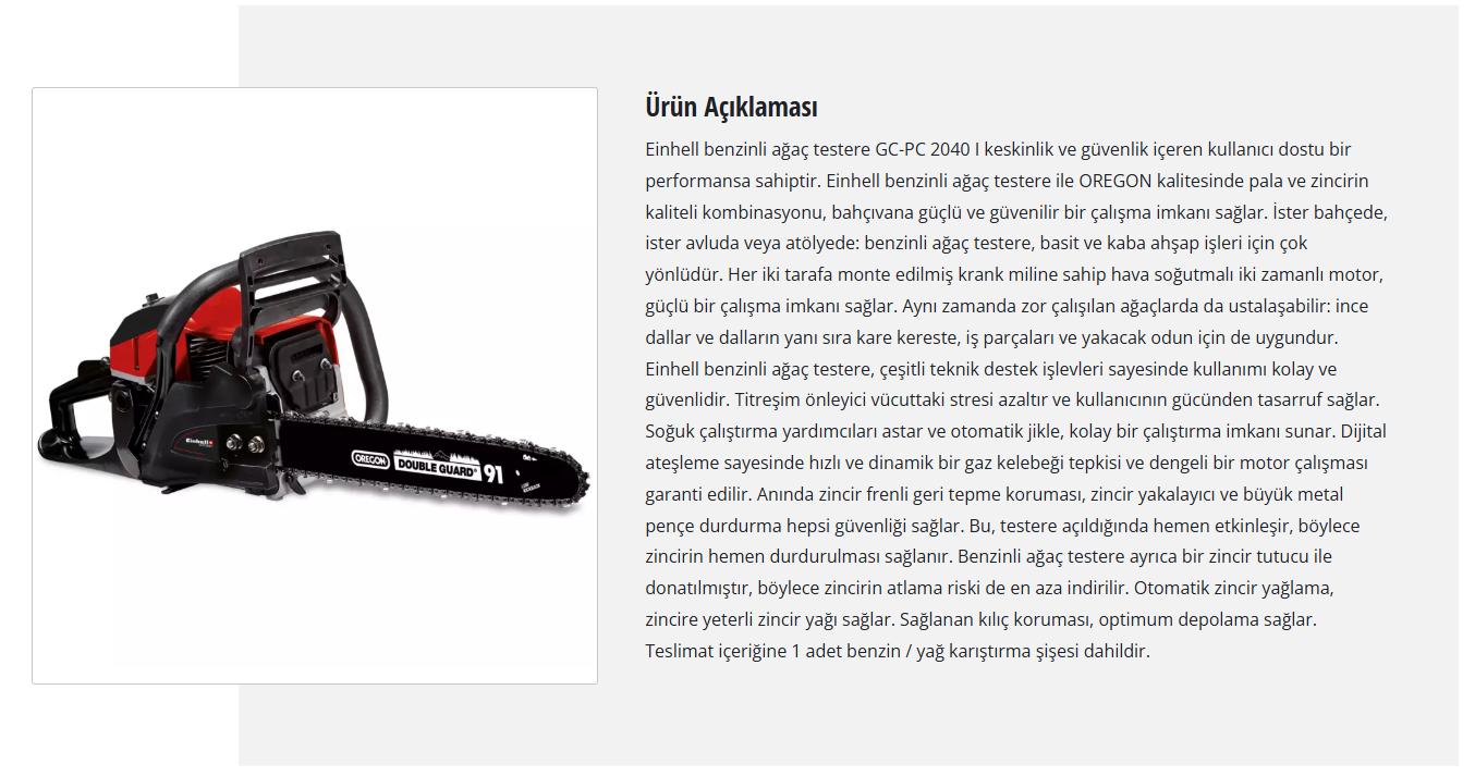 Einhell Gc-Pc 2040 I, Benzinli Ağaç Kesme