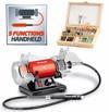 Einhell TH-XG 75 Kit Çok Fonksiyonlu Taş Motoru tüm küçük taşlama, parlatma ve temizleme işlerini zahmetsizce yapan çok yönlü bir cihazdır.Ahşap 100 parçalı aksesuarlar çantası sayesinde kesim işlerini bile halledebilir. Sağlam, uzun ömürlü metal tasarıma sahiptir ve kaymaz, titreşim emici dört ayak üzerinde sağlam bir şekilde durmaktadır. Einhell TH-XG 75 Kit Çok Fonksiyonlu Taş Motoru bir kaba taşlama diski ve bir adet ince parlatma diski ile tedarik edilir. Aynı zamanda üzerinde çalışmak istediğiniz taşın kalınlığına kolayca uyarlanabilen ayarlanabilir çalışma desteklerine de sahiptir. Hız, aynı şekilde belirli bir iş için ayrı ayrı ayarlanabilir.