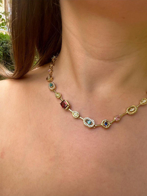 Eka Tasarım Renki Taşlı Tasarım Kolye Gold