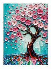 Ekart Ağaç Ve Pembe Çiçekler Art Mdf Poster 25 cm x 35 cm