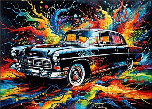 Ekart Ahşap Mdf Puzzle Yapboz Retro Siyah Araba 255 Parça 35 x 50 cm