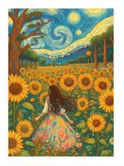 Ekart Ayçiçekleri Ve Kadın Modern Mdf Tablo 50 cm x 70 cm