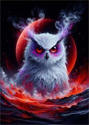 Baykuş Ve Kırmızı Dolunay Mdf poster 25 cm x 35 cm