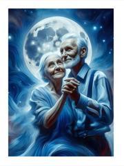 Dolunay Ve Yaşlı Çift Tasarım Mdf Tablo 35 cm x 50 cm