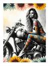 Ekart Dövmeli Motorcu Kadın Ve Çiçekler Mdf poster 50 cm x 70 cm