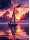 - Gün batımı ve yelkenli temalı illüstrasyon tablo, mekanınıza sıcak ve huzurlu bir atmosfer katıyor