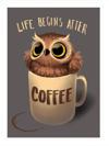 Kahve Fincanı Ve Baykuş Desenli Mdf Tablo 50 cm x 70 cm
