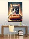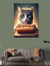 Kanvas Tablo Hotdog  Yiyen Kedi
