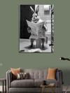Ekart Kanvas Tablo Tuvalette Gazete Okuyan Tavşan