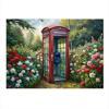 Kırmızı Telefon Kulübesi Ve Çiçekler Mdf Tablo 35 cm x 50 cm