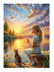 Ekart Kumsaldaki Çocuk Ve Kedi Mdf Tablo 25 cm x 35 cm