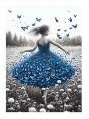 Ekart Mavi Elbiseli Kız Art Mdf Tablo 25 cm x 35 cm