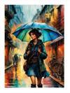 Mavi Şemsiyeli Genç Kız Art Mdf Tablo 35 cm x 50 cm
