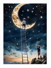 Ekart Merdivenle Aya Tırmanan Çocuklar Dekoratif ahşap Tablo 25 cm x 35 cm