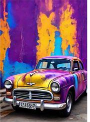 Mor Sarı Klasik Araba Mdf poster 35 cm x 50 cm